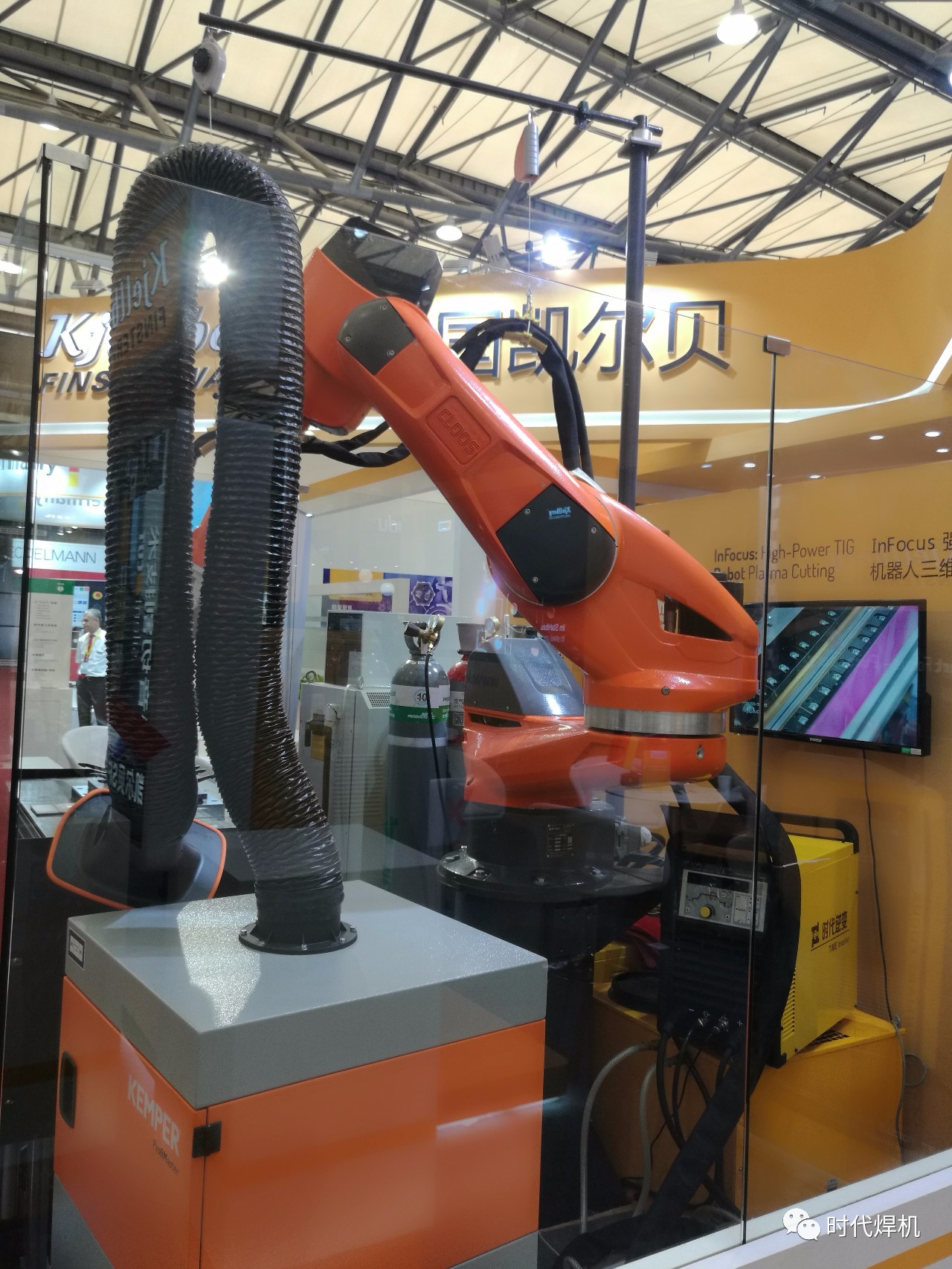 該系統(tǒng)由時代TDW5000直流氬弧焊機、德國凱爾貝InFocus焊槍和克魯斯機器人組成,德國凱爾貝InFocus專利技術(shù),適合不銹鋼和鋁合金的對接焊縫,工件不需要預(yù)制坡口,單面焊雙面成型,焊接效率高,質(zhì)量好,具有非常廣泛的應(yīng)用前景。