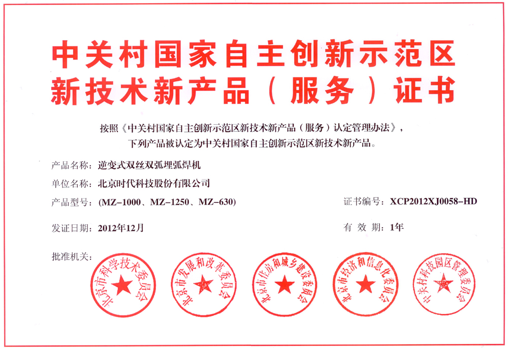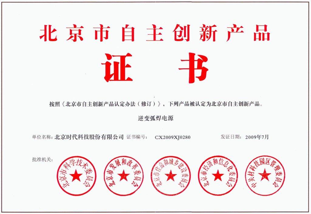 | 2009-07 | 北京市自主創新產品(逆變弧焊電源) | 北京市科學技術委員會 |