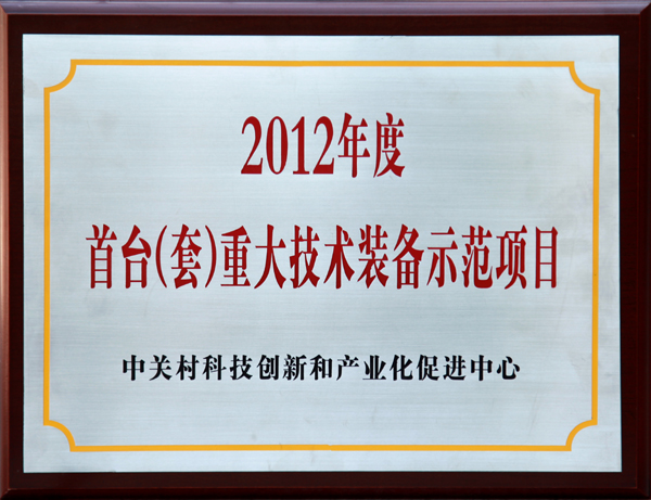 | 2012-04 | 2012年度首臺(套)重大技術裝備示范項目 | 中關村科技創新和產業化促進中心 |