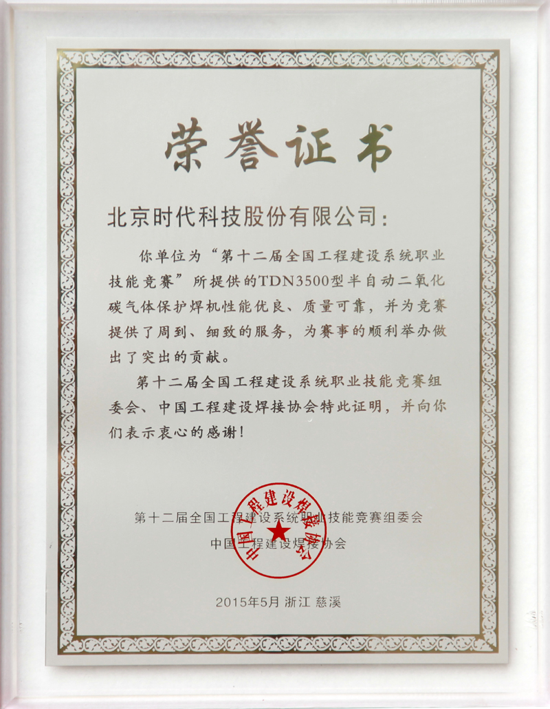 | 2015-05 | 第十二屆全國工程建設系統職業技能競賽榮譽證書 | 中國工程建設焊接協會 |